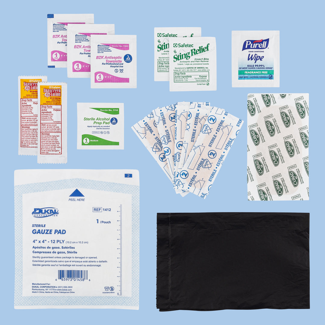 HYGIENIC SOLUTIONS: Includes hand sanitizing wipes, alcohol prep pads, and antiseptic towelettes for maintaining cleanliness in any situation.